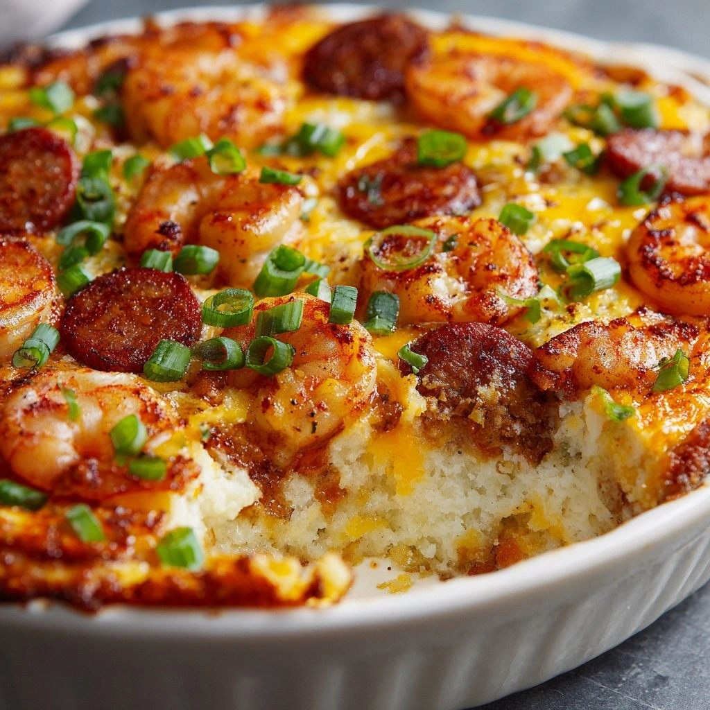 - Assemble the Casserole: In a 9×13 inch baking dish, spread a thin layer of the shrimp mixture. Pour the grits‑egg mixture over the shrimp, ensuring even coverage. Sprinkle the remaining cheddar cheese on top and finish with a drizzle of butter. This layering technique ensures each bite has a balance of shrimp, cheese, and creamy grits.