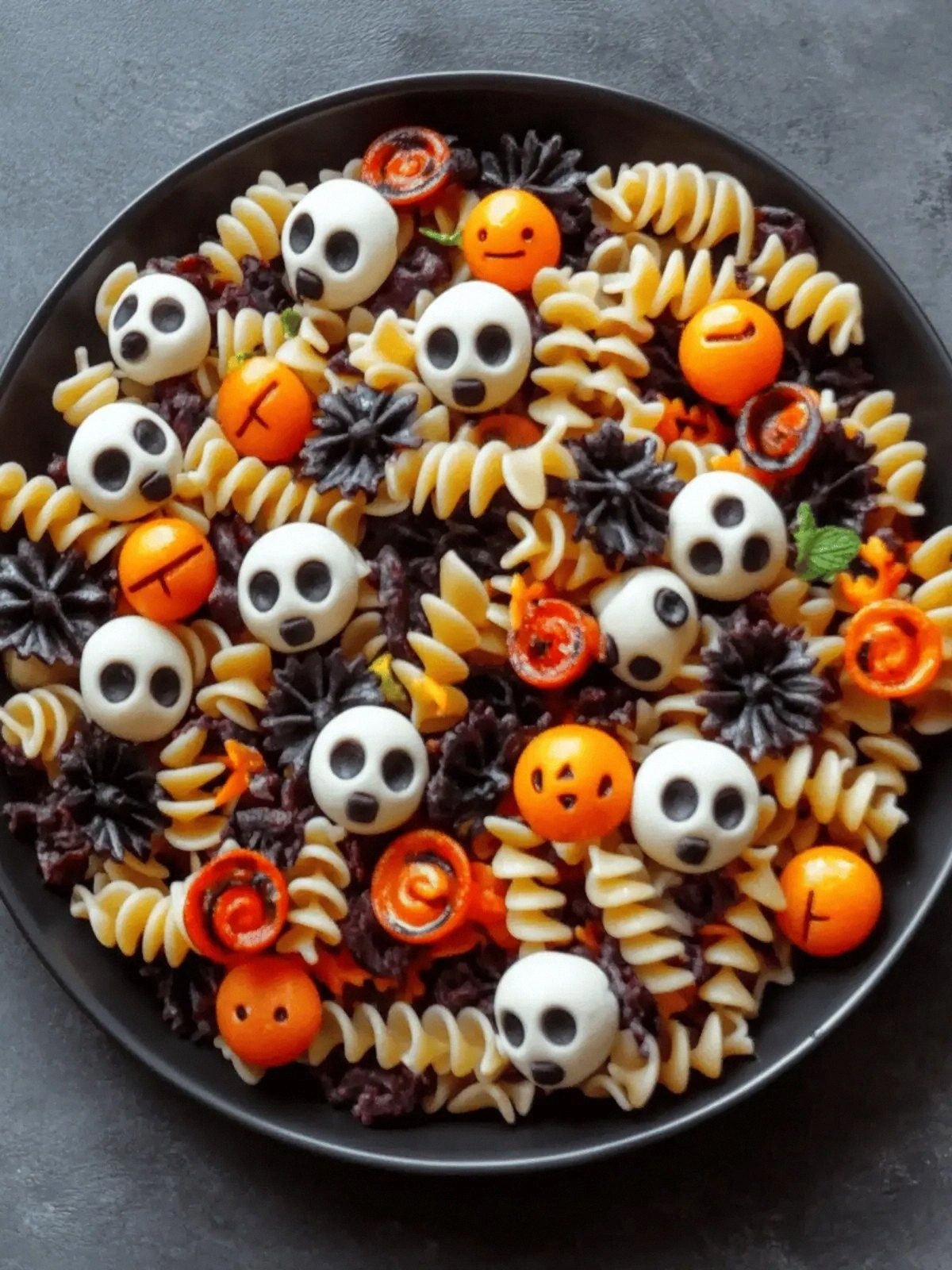 Let me be clear: this isn’t just a pasta salad. It’s a full-on culinary spell that turns ordinary pasta into a canvas for Halloween creativity. The bright orange bell pepper slices look like miniature pumpkins, while the black olives and black gel food coloring give the dish an eerie, midnight sheen. The mushrooms add earthy depth, and the mozzarella provides that silky, gooey texture that makes every bite feel like a little treat. This version stands out because it balances savory, sweet, and slightly tangy flavors, all while keeping the dish light enough for a side dish or hearty main. If you’ve ever tried a pasta salad that tasted like it was made in a hurry, this one will make you wonder why you ever settled for anything else. I dare you to taste this and not go back for seconds—trust me, it’s addictive.