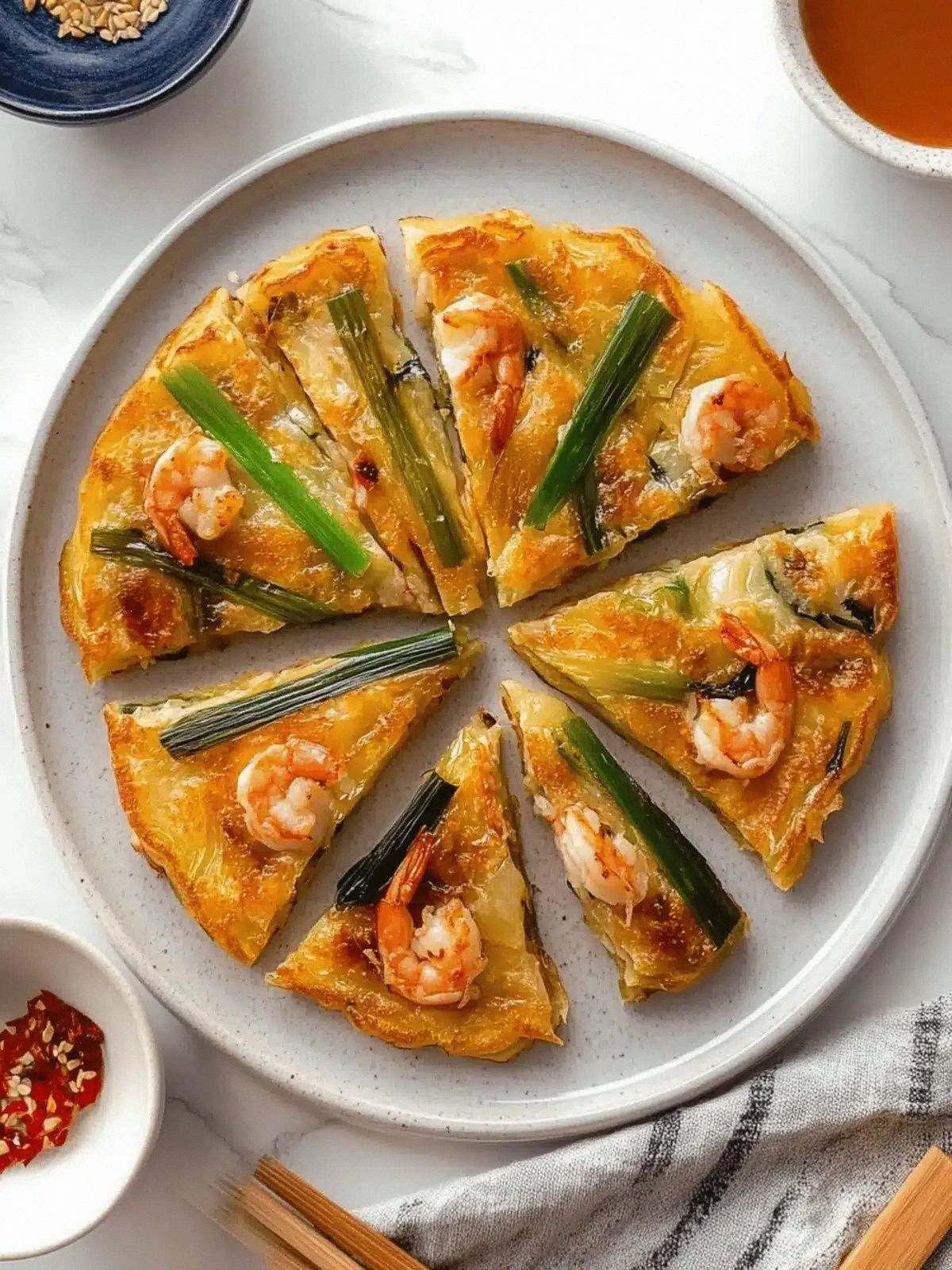 Picture yourself pulling a stack of golden pancakes from the pan, steam curling like a soft cloud, the aroma of sesame oil and chili dancing in the air. Imagine the crunch as you bite into the crisp edge, the tender shrimp inside giving way to a burst of savory flavor. The contrast of textures is like a perfectly timed dance between fire and water, a harmony that’s hard to resist. I dare you to taste this and not go back for seconds. Let me walk you through every single step — by the end, you'll wonder how you ever made it any other way.