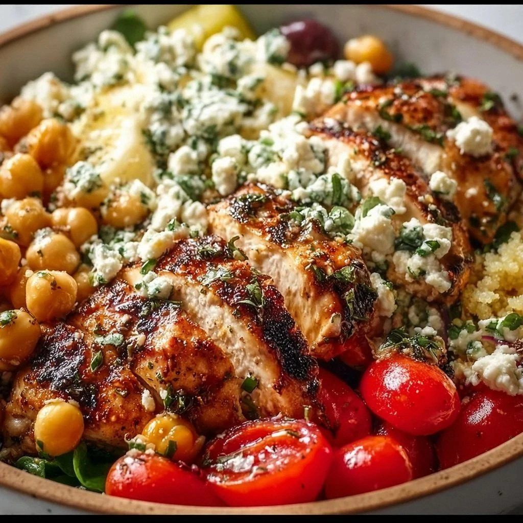 What makes this recipe stand out is not just the flavors but the way each component plays its part like a well‑orchestrated symphony. The chicken is marinated to lock in moisture and flavor, then seared to a golden crust that holds the juices inside. The chickpeas bring a hearty bite that keeps the bowl filling without overpowering the delicate herb profile. Quinoa adds a subtle nutty undertone and a chewy texture that contrasts beautifully with the soft feta. Every element is intentionally chosen to create a balance that feels both comforting and adventurous.