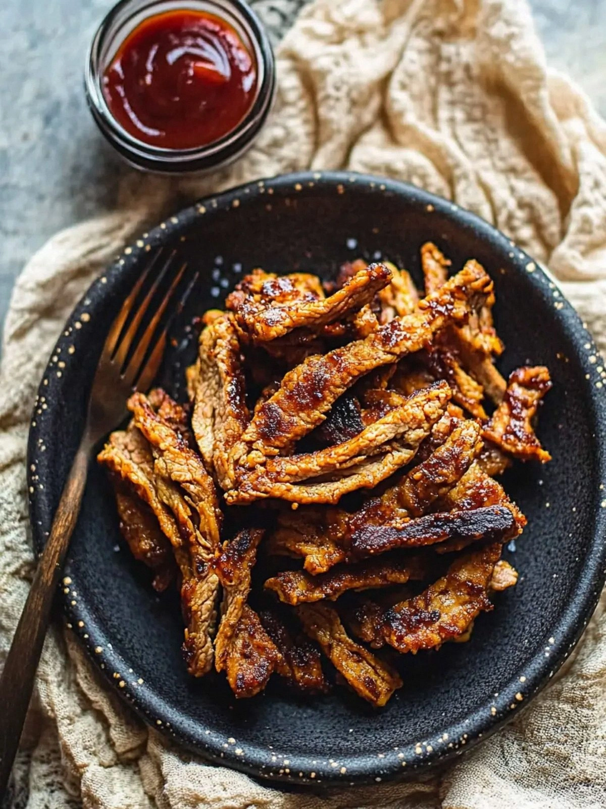 Liquid smoke is the secret weapon that gives the strips a smoky aroma reminiscent of a grill. A quarter teaspoon is enough to deliver a subtle, smoky depth without overpowering the other flavors. If you don’t have liquid smoke, a pinch of smoked paprika can mimic the effect, though it won’t replicate the exact smokiness. Keep in mind that liquid smoke is potent; a little goes a long way. A small bottle will last for several batches, making it a pantry staple for future experiments.